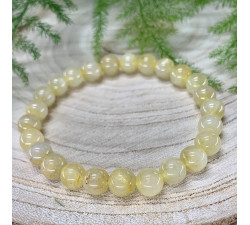 Ručně navlečený náramek z kuličkového minerálu na elastické zdvojené šperkařské gumičce. Obvod je cca 18 cm. Krabička je součástí dárkového balení.